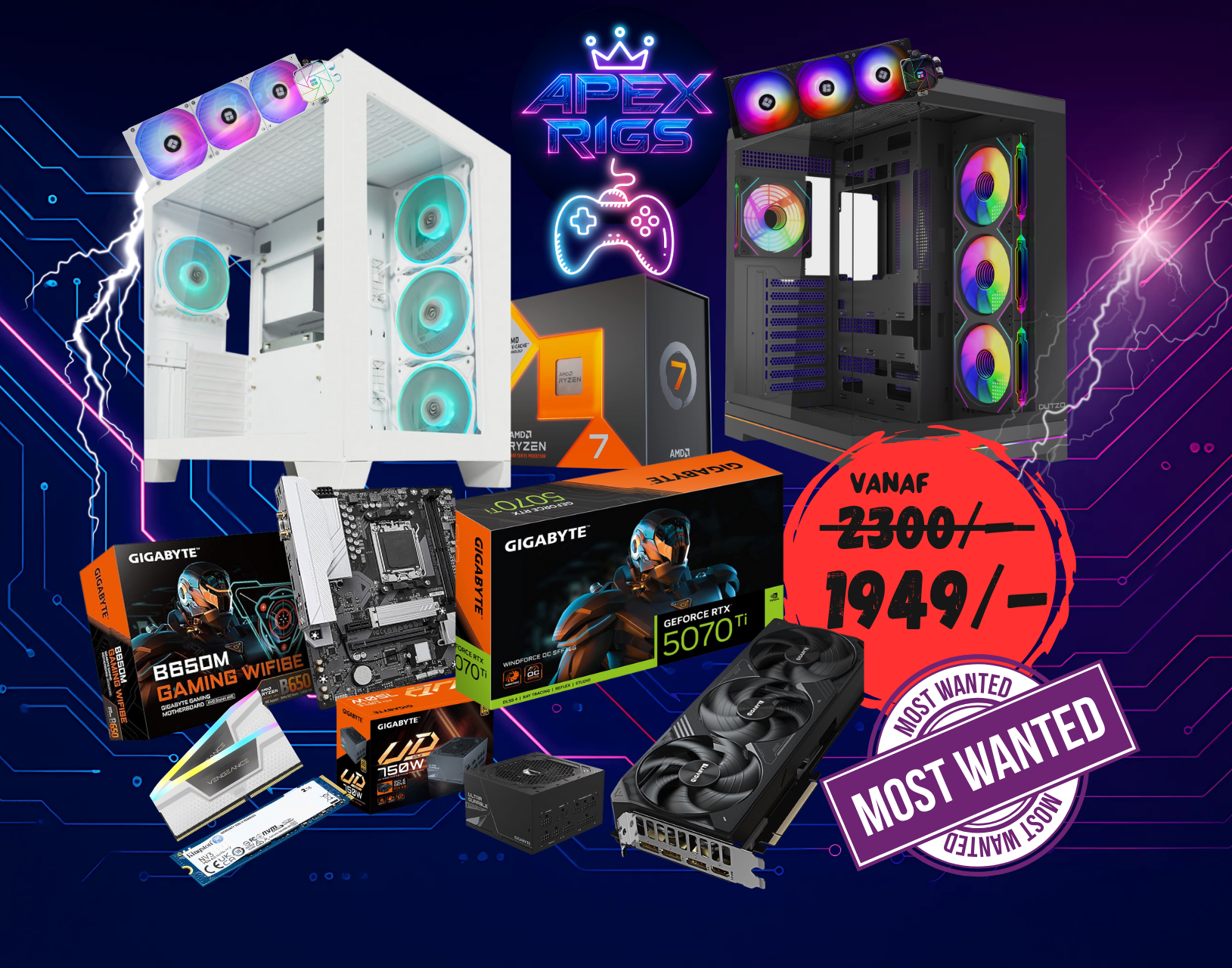 Door een bestelling te plaatsen bij Apex Rigs ga je akkoord met onze servicevoorwaarden. Alle gaming-PC’s worden op maat samengesteld op basis van beschikbaarheid en de huidige marktsituatie. Afbeeldingen en configuraties dienen ter illustratie en kunnen afwijken in merk of exacte onderdelen. De definitieve specificaties worden vóór betaling bevestigd op de factuur.